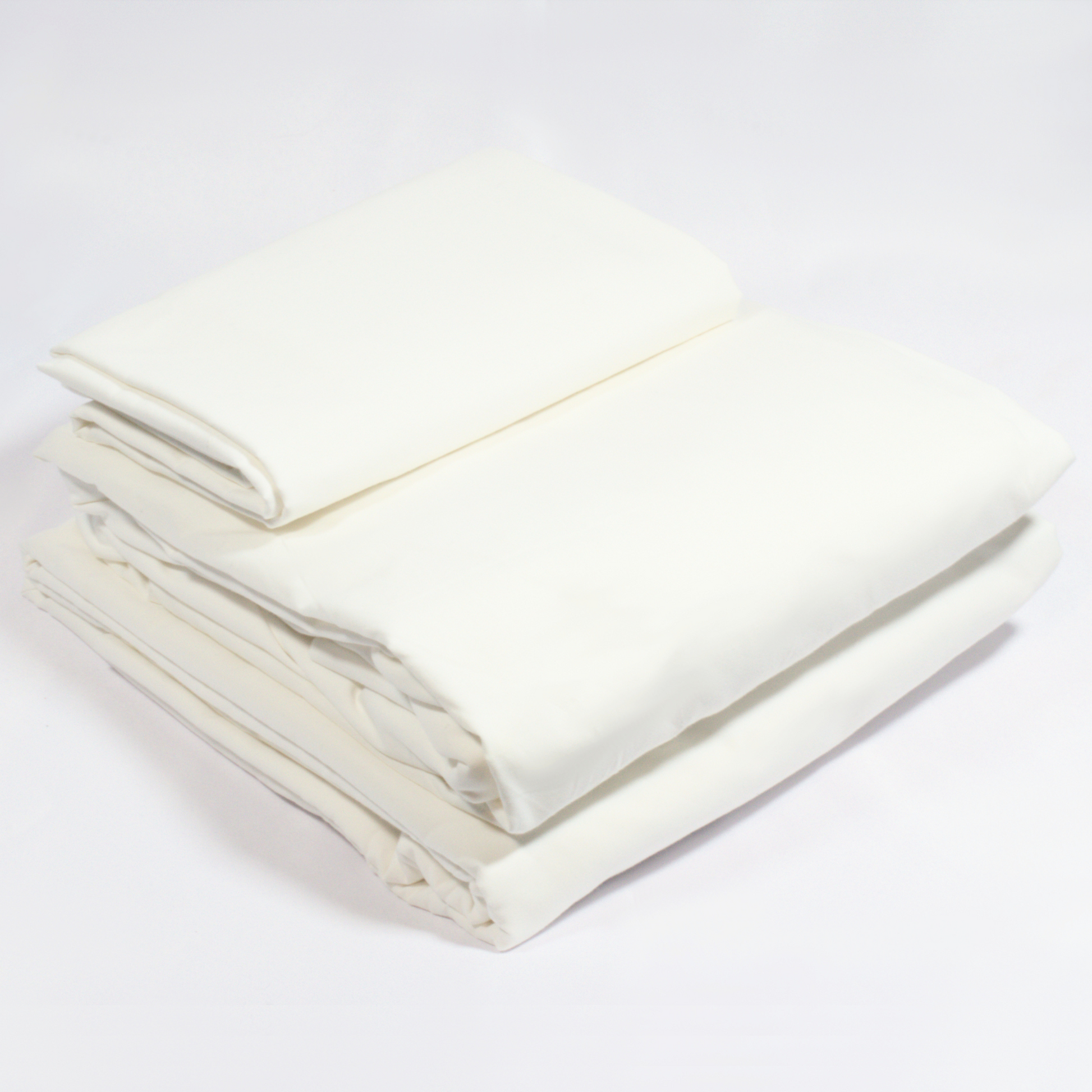 - Single: 1 flat sheet (180cm x 260cm), 1 fitted sheet (90cm x 190cm with 27cm depth), 1 pillowcase (48cm x 76cm)